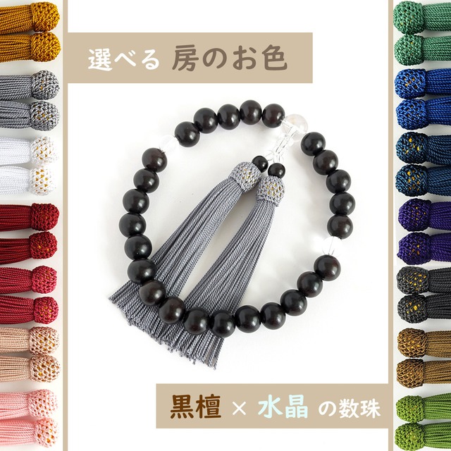 【男性用/主玉12mm】選べる房の色*極みシンプル黒檀と水晶の数珠・略式念珠