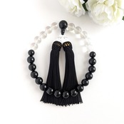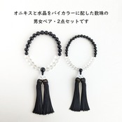 ペア・お揃い・夫婦数珠...【念珠2点セット】オニキス&水晶・モノトーンの数珠・略式念珠/正絹漆黒房