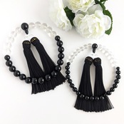 親玉と二点玉・主玉の上部半分は黒の天然石の代表であるオニキス。お房の色味も合わせ、漆黒のお色に統一しています。