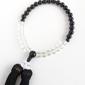 【男性用/主玉12mm】オニキス&水晶・モノトーンの数珠・略式念珠/正絹漆黒房