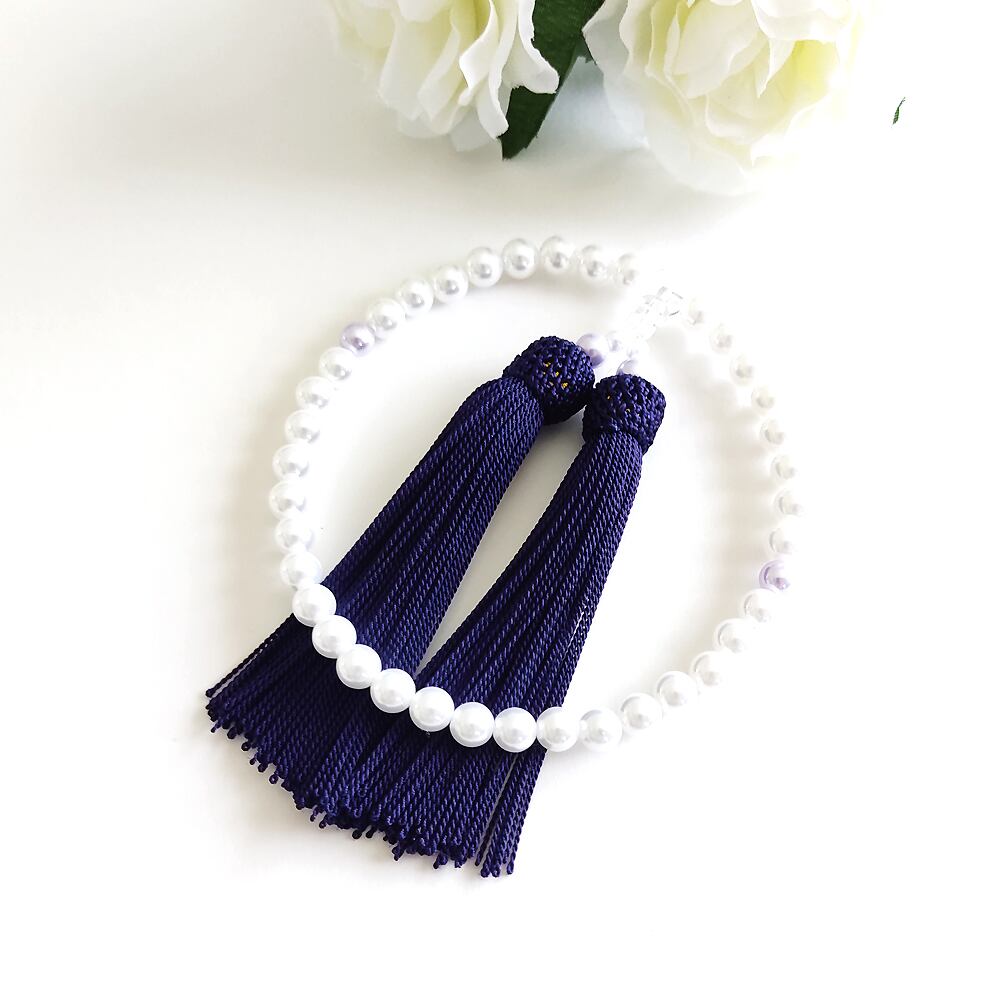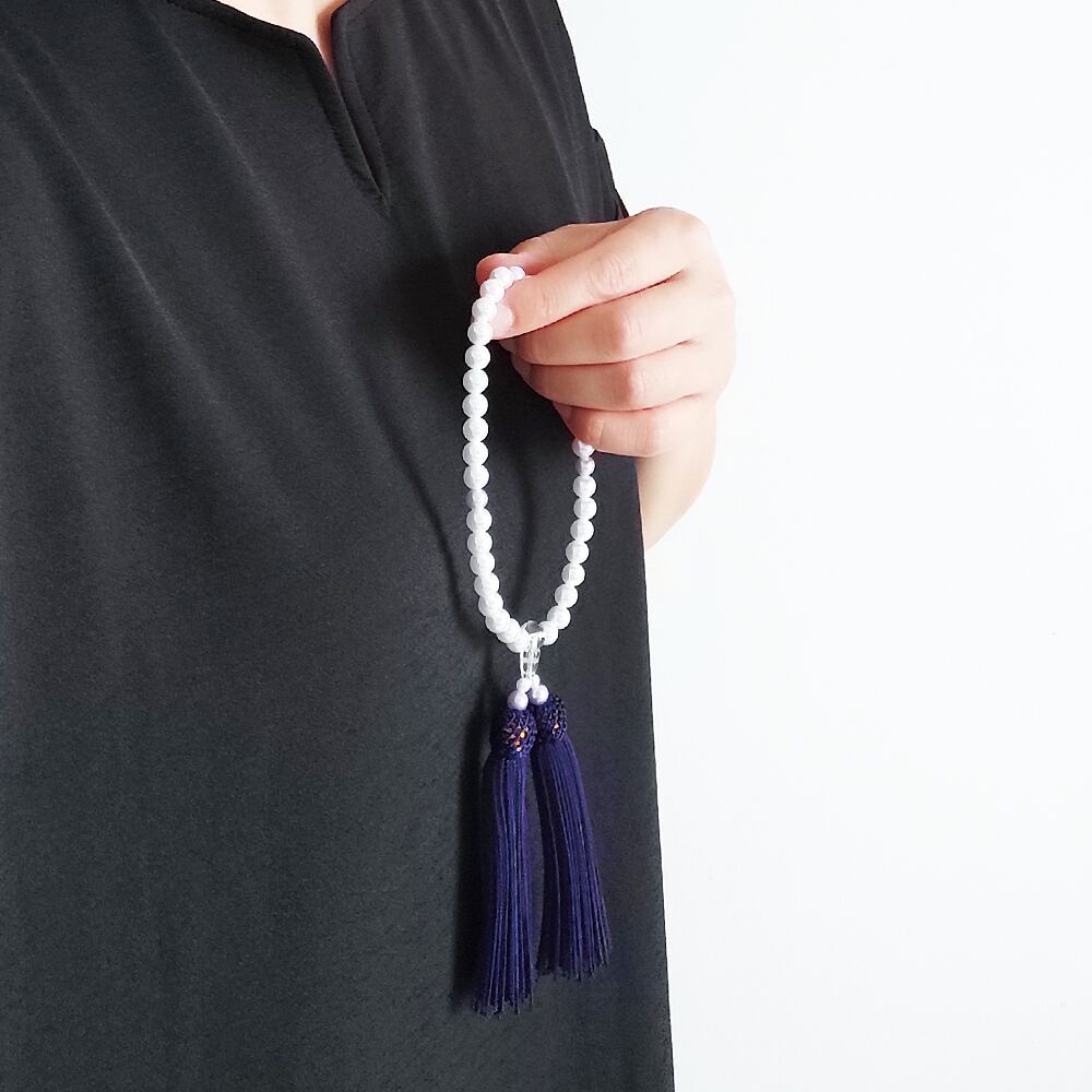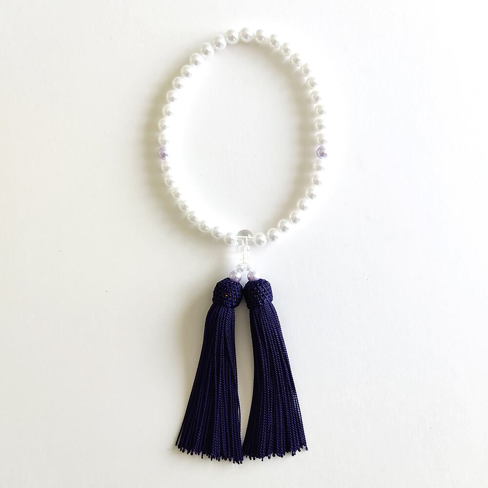 【女性用/主玉7mm】極みシンプルパールの数珠・略式念珠/紫紺房