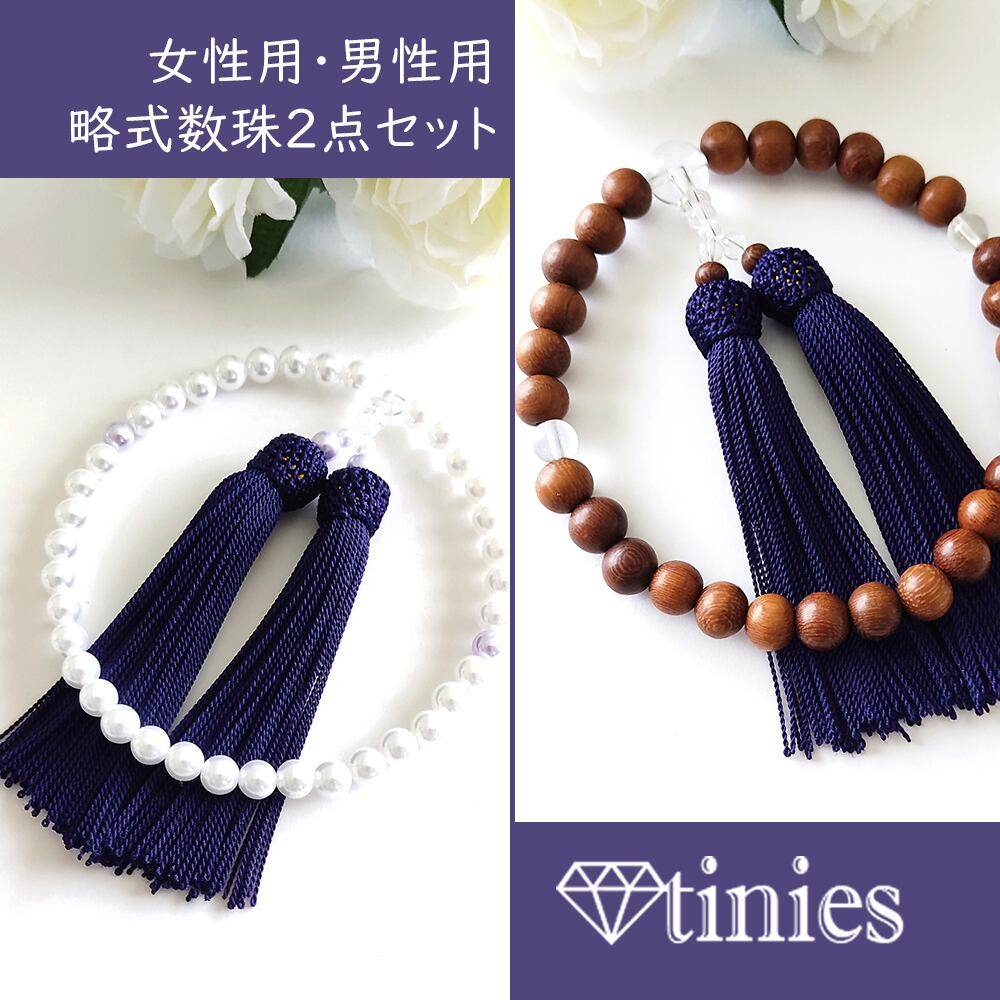 宗派問わずお使い頂ける女性用・略式数珠と男性用・略式数珠の【念珠2点セット】です。