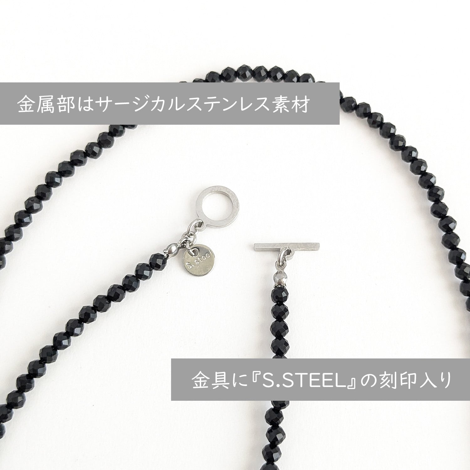 【3mmオニキス*120cmロングネックレス】サージカルステンレス 316 金属アレルギー対応 オケージョン 2連 3連