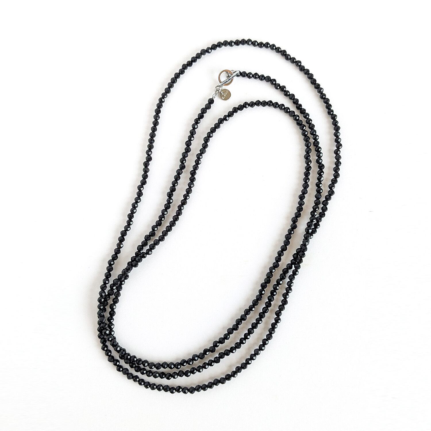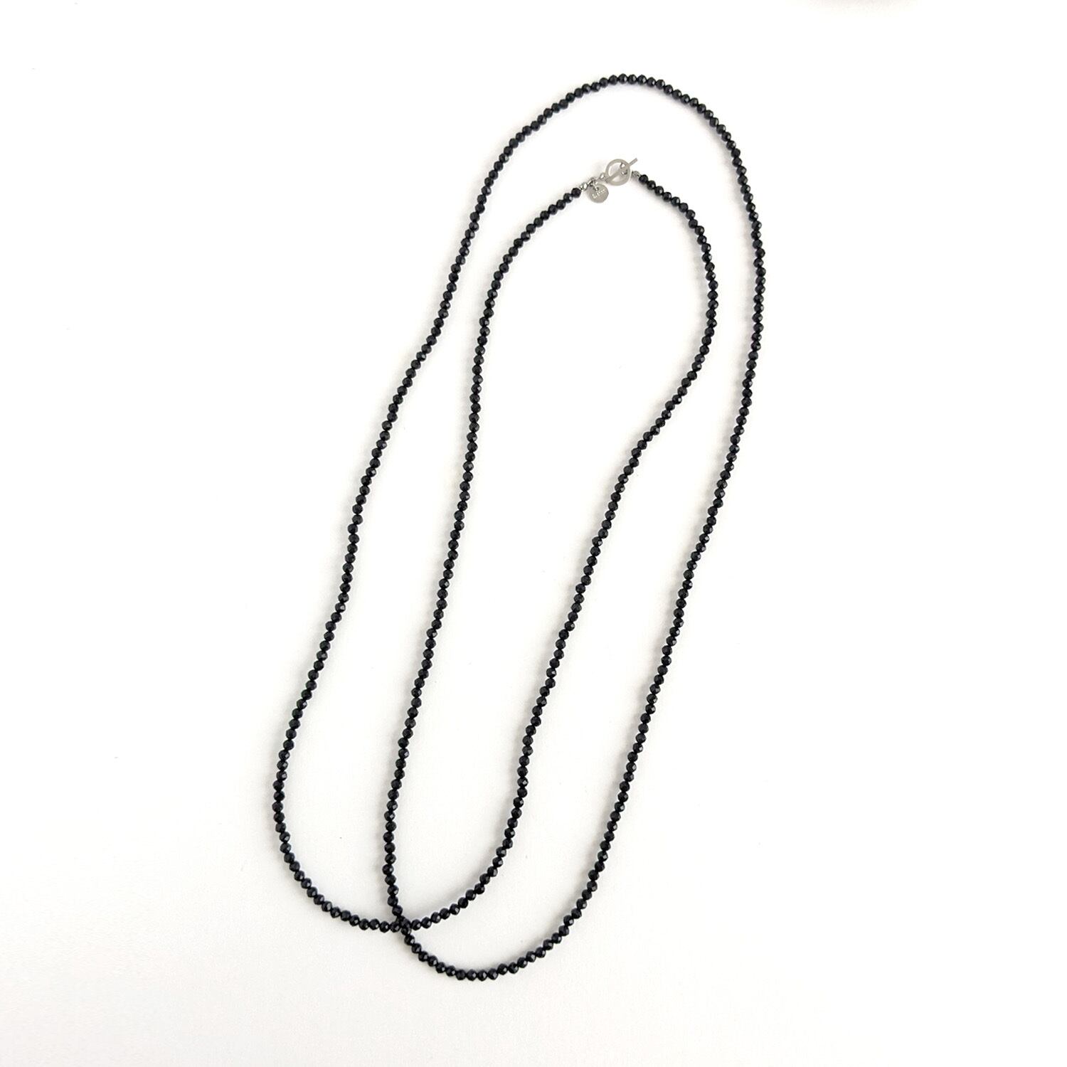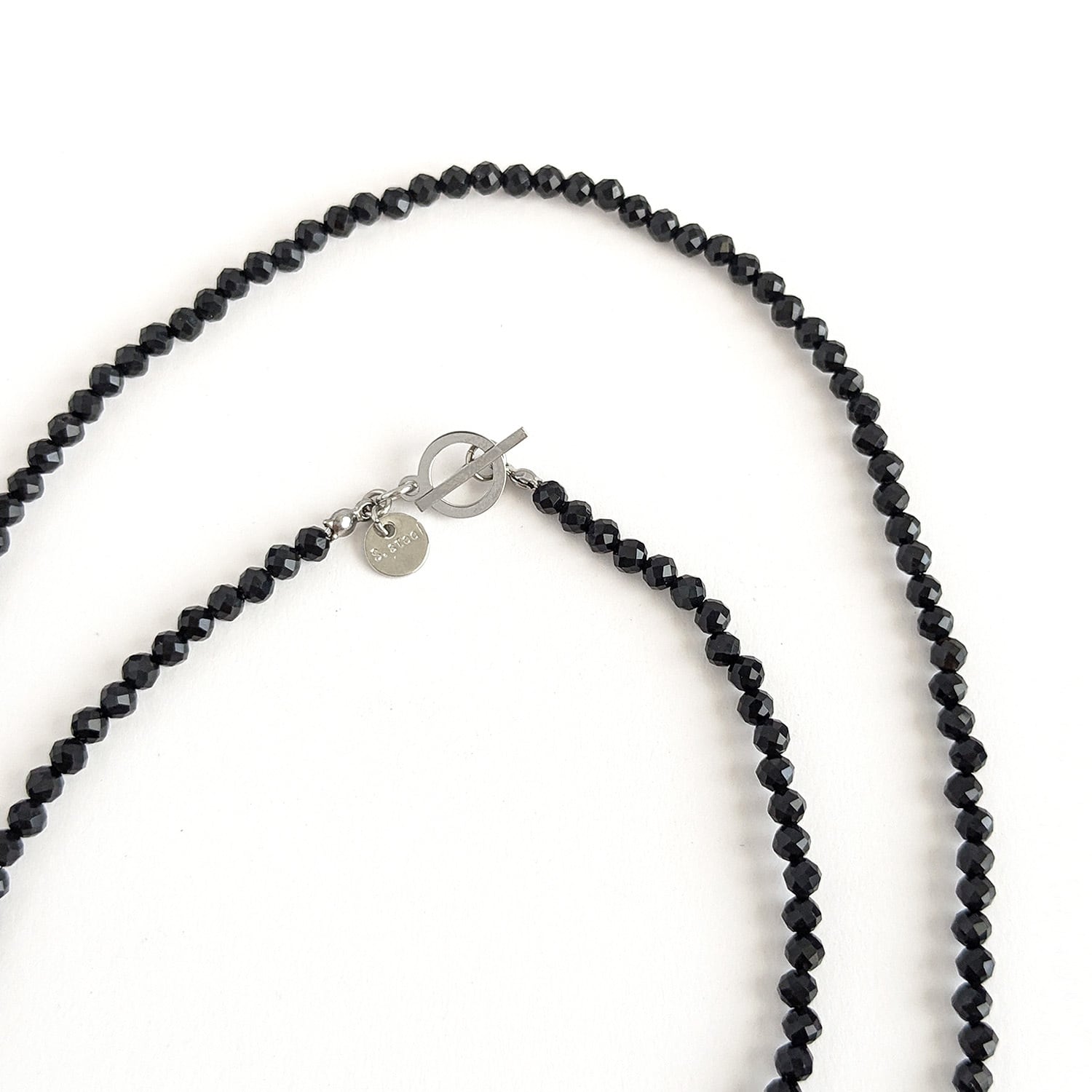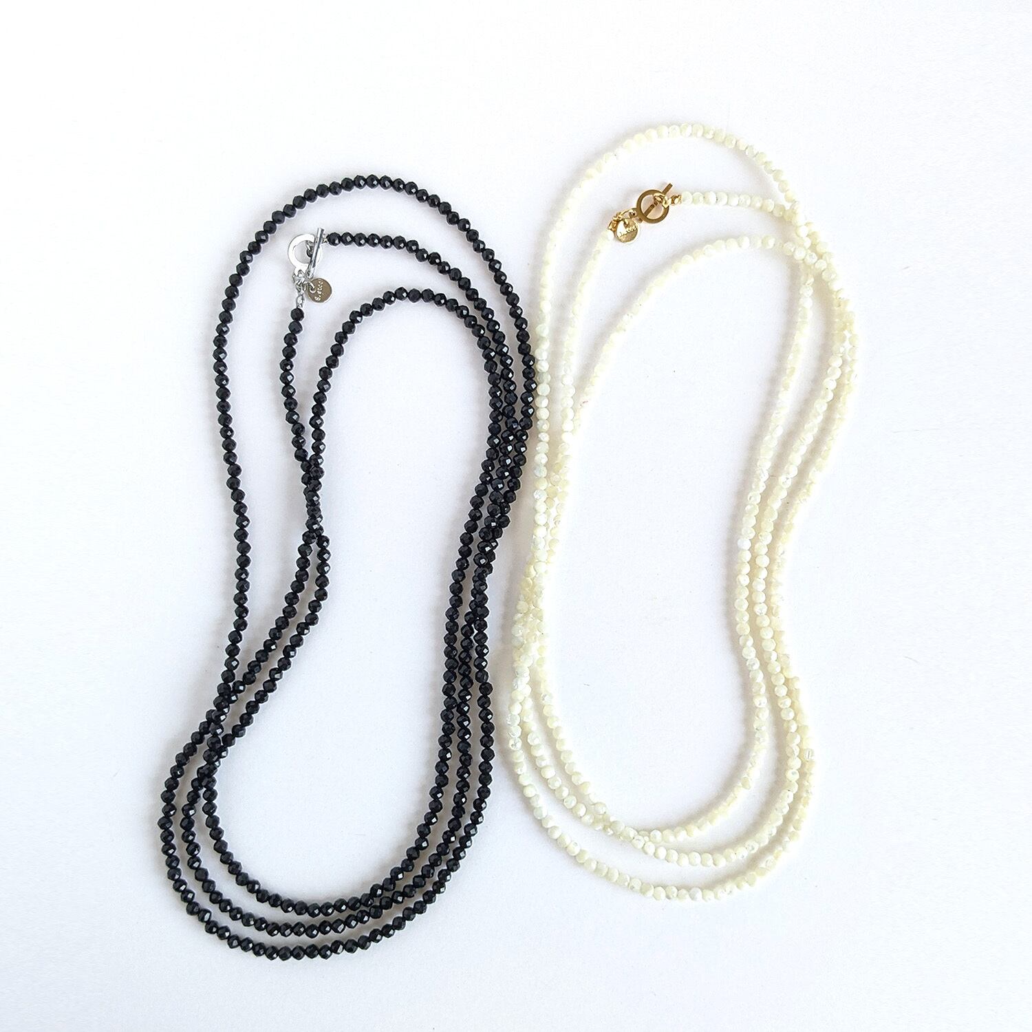 フォーマルな場面から普段の装いにもお使いいただける、極小3mmラウンドカット・オニキスのロングネックレスです。