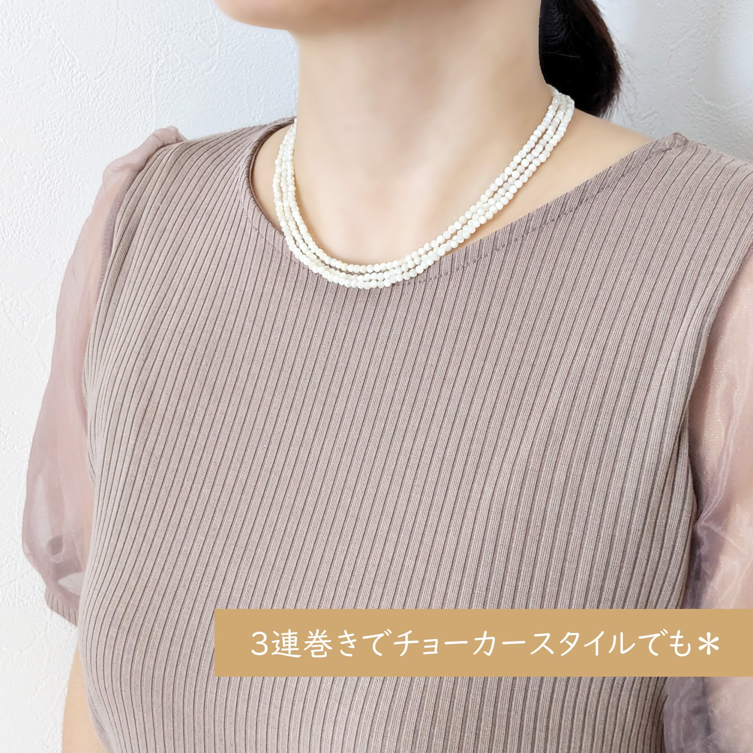 120cmとたっぷりとした長さは、1連・2連・3連とスタイルに合わせてお使いいただけます。