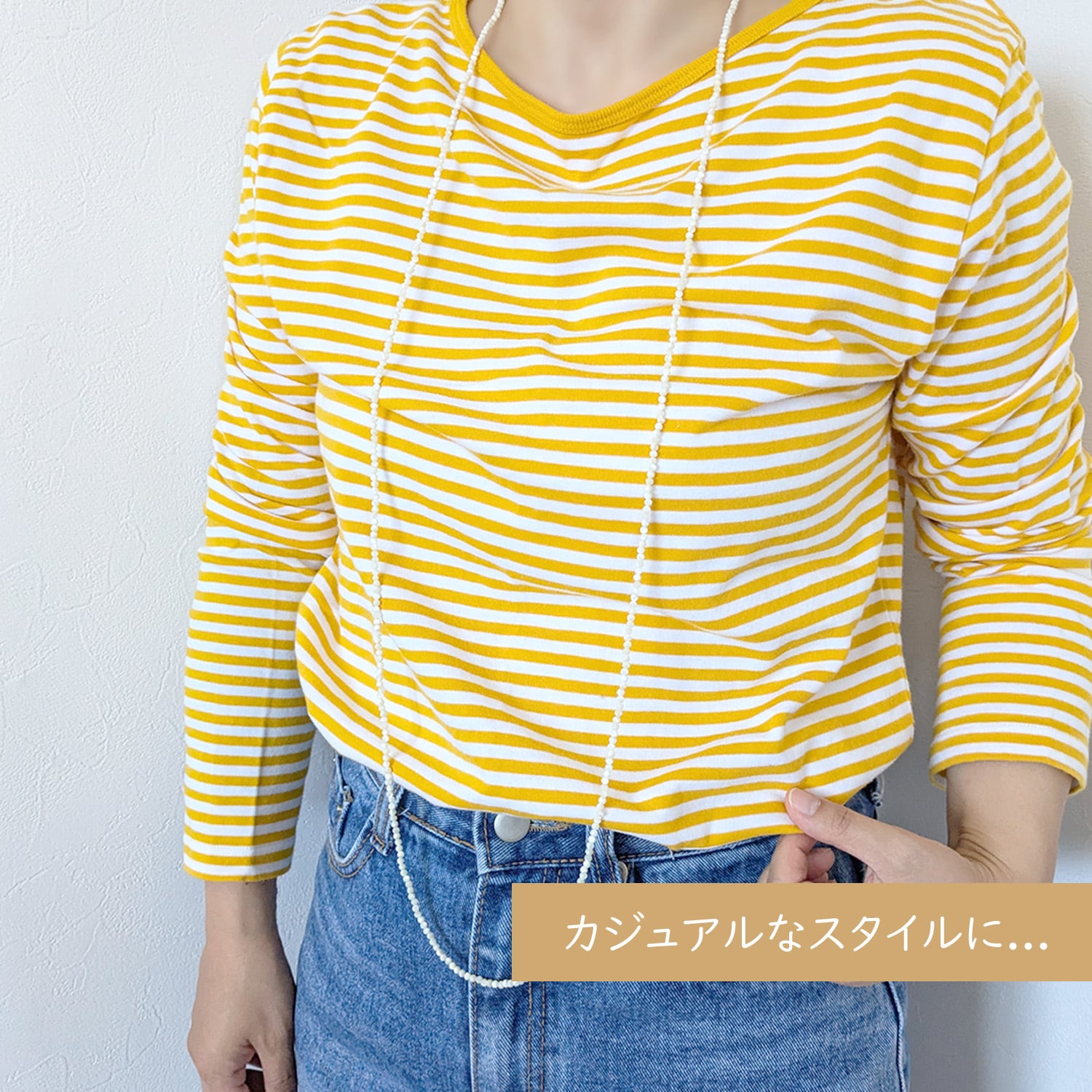 縦長ラインを強調してくれるロングネックレスはオンにもオフにも重宝するアクセサリーです。