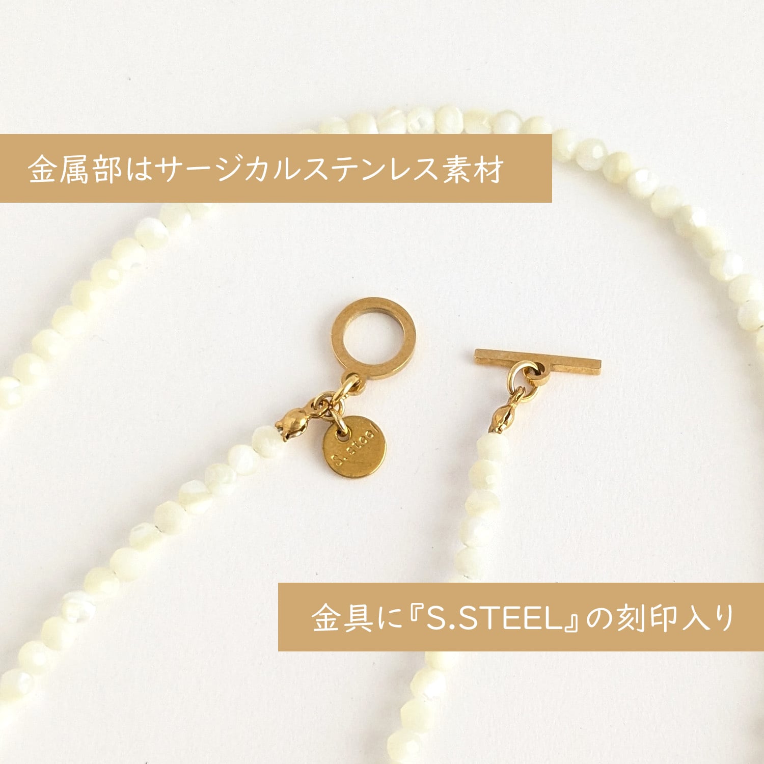 【3mmマザーオブパール*120cmロングネックレス】サージカルステンレス 316 金属アレルギー対応 オケージョン 2連 3連