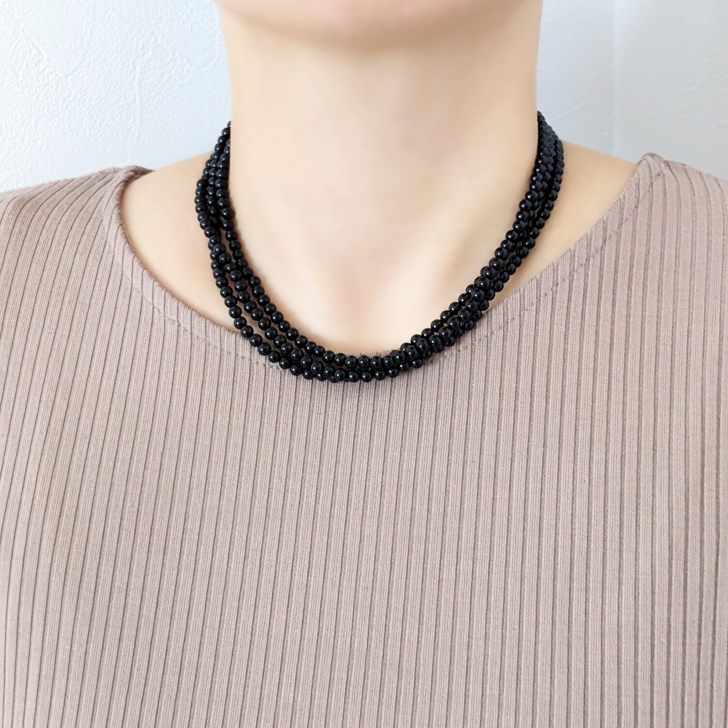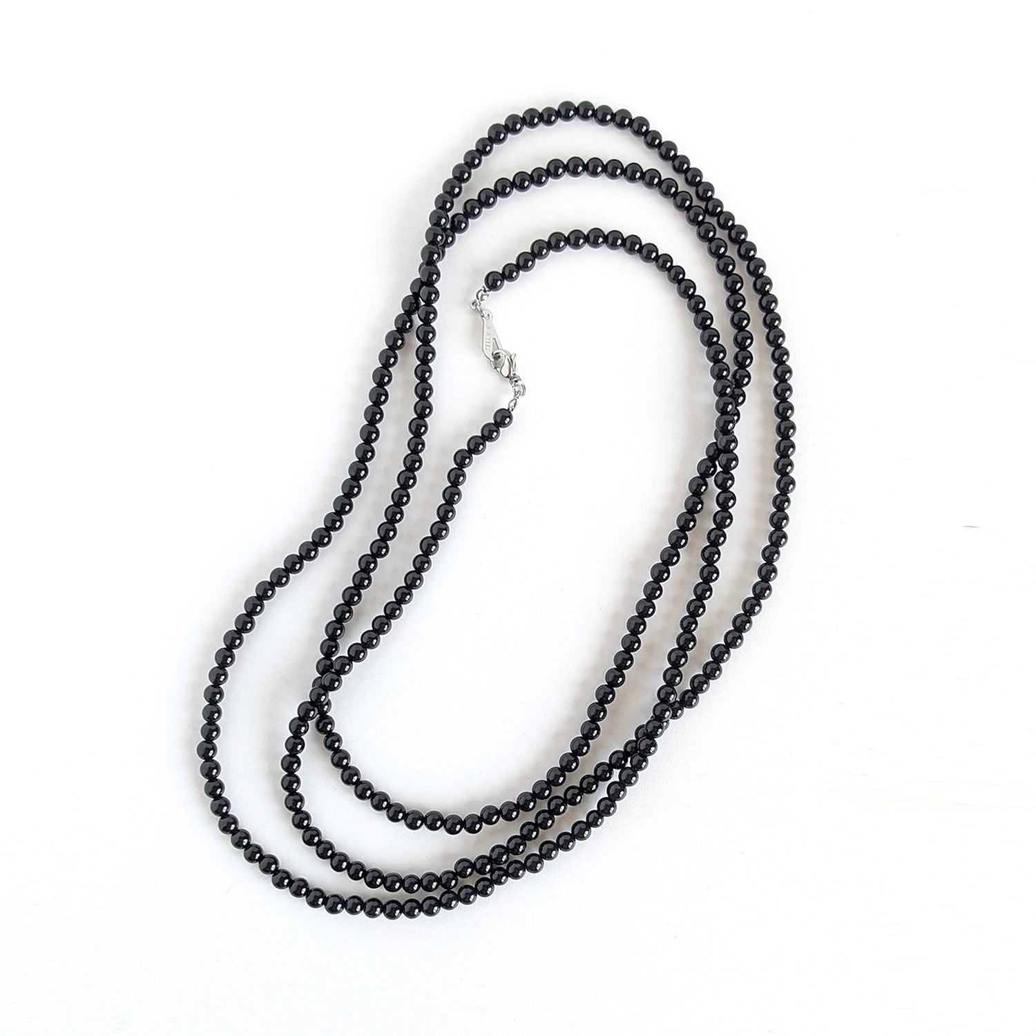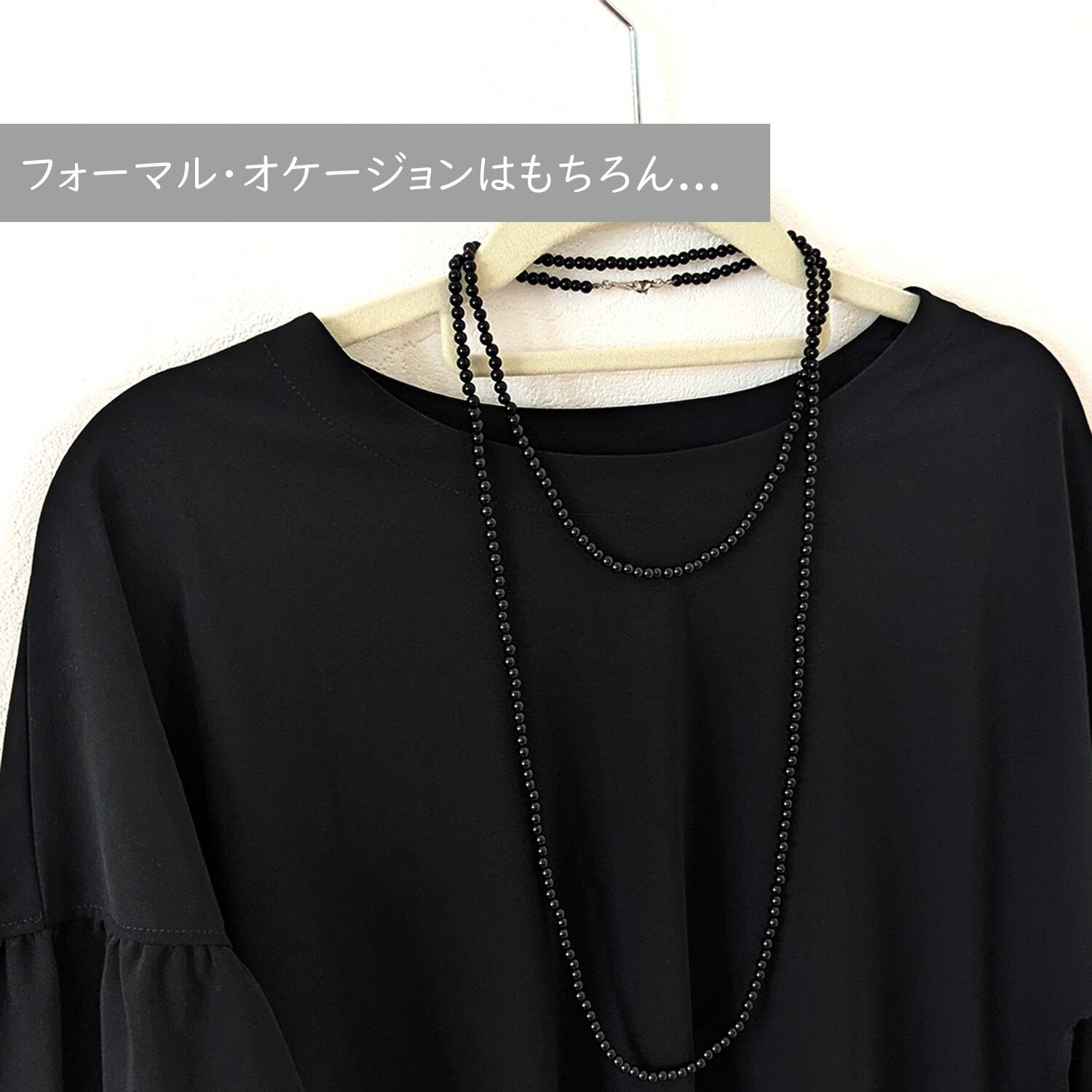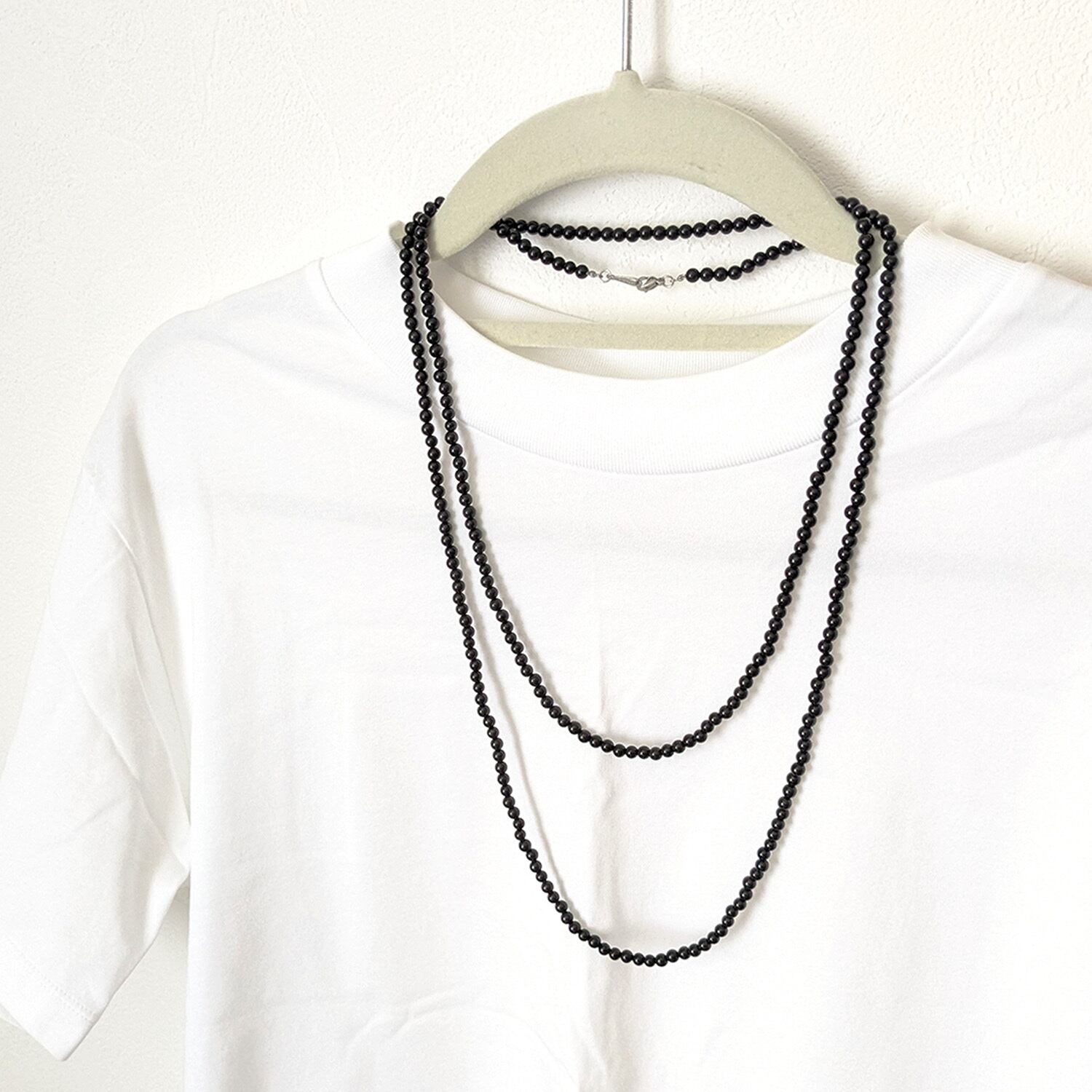 フォーマルな場面から普段の装いにもお使いいただける、シンプルな4mmサイズの天然石・オニキスのロングネックレスです。
