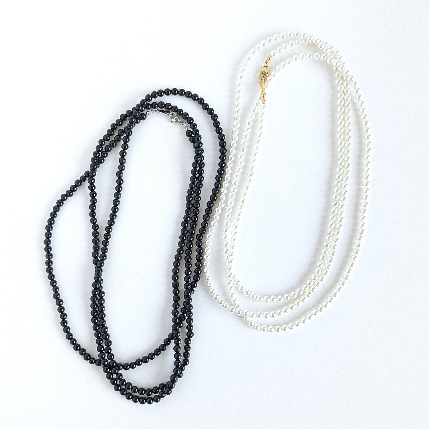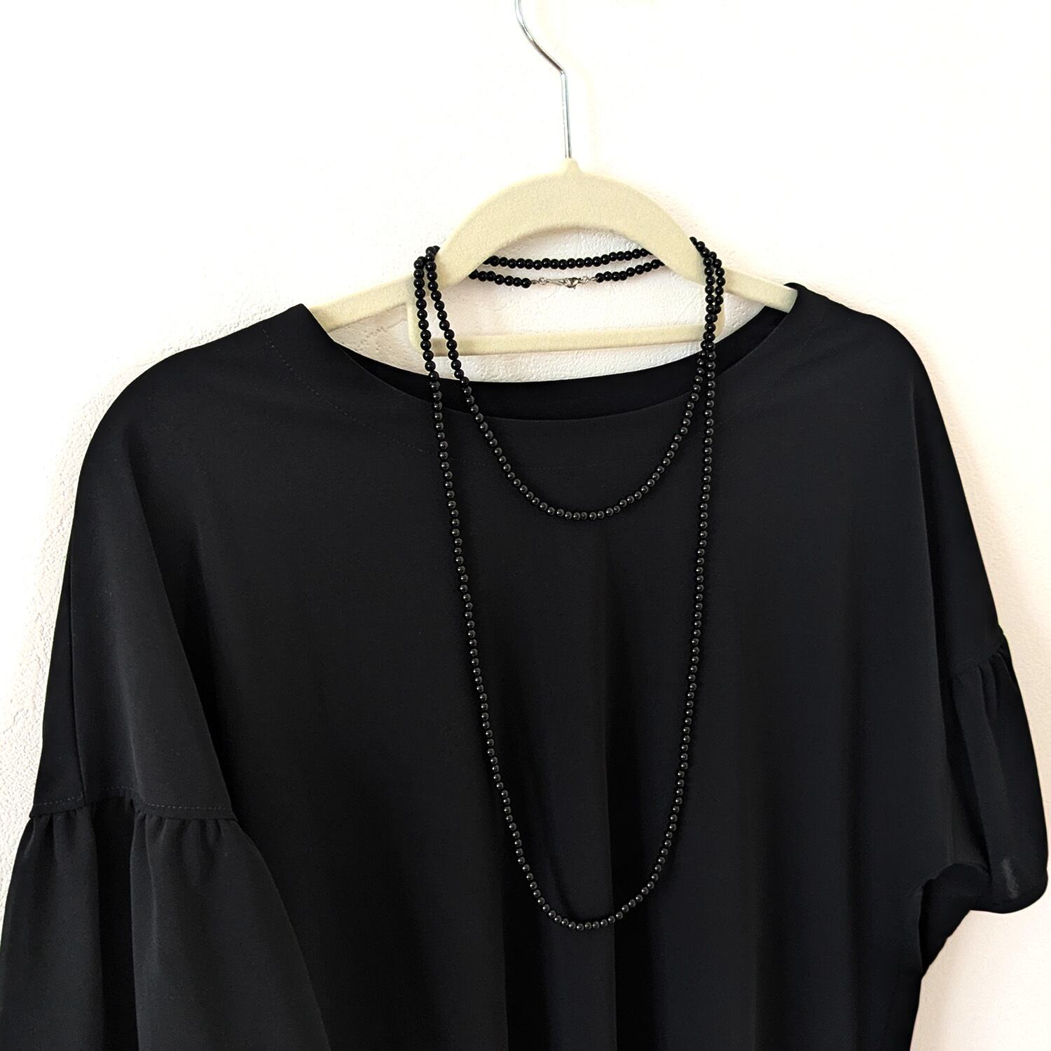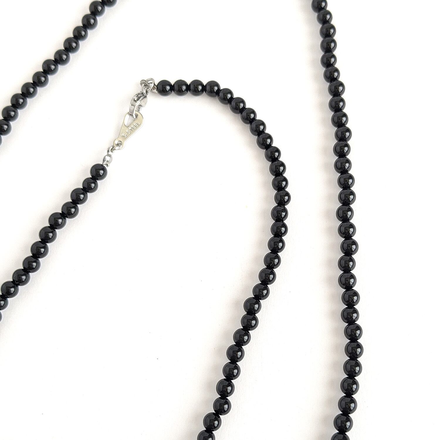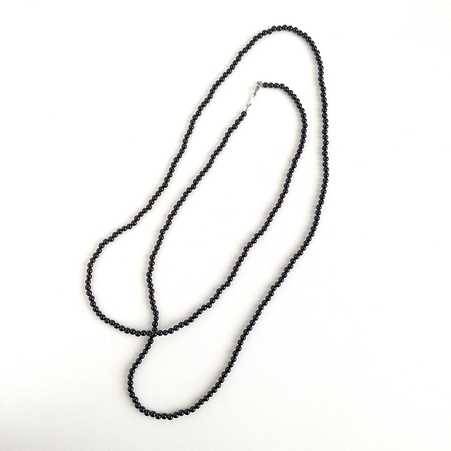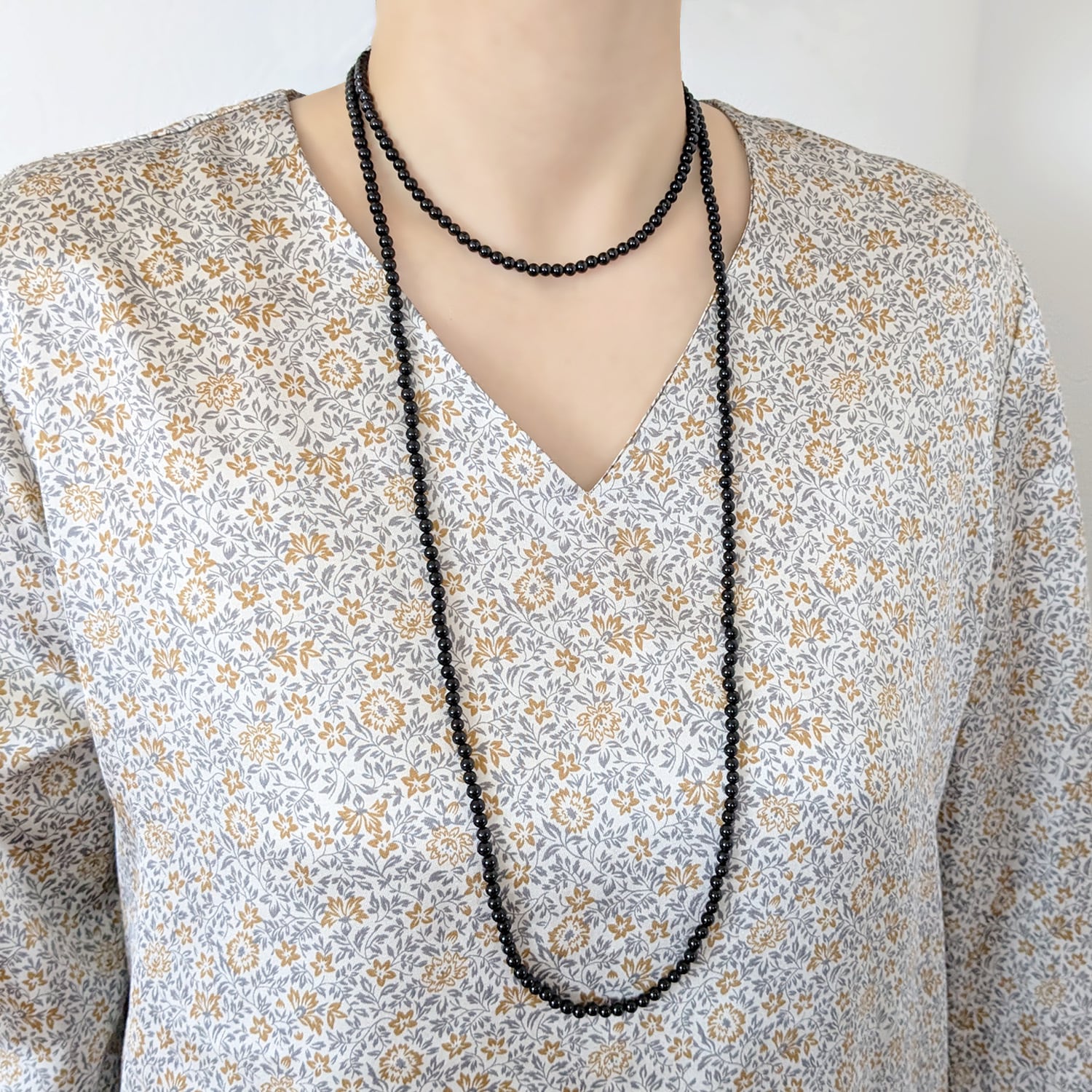 フォーマルな場面から普段の装いにもお使いいただける、シンプルな4mmサイズの天然石・オニキスのロングネックレスです。