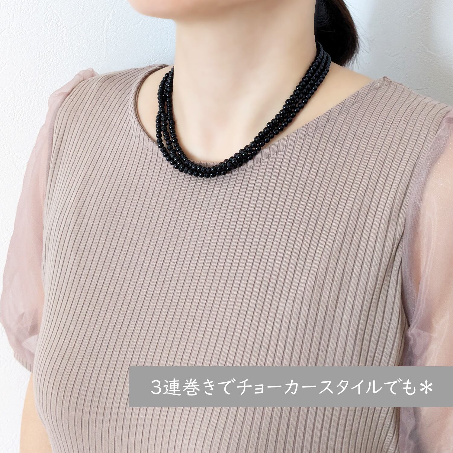 【4mmオニキス*120cmロングネックレス】サージカルステンレス 316 金属アレルギー対応 オケージョン 2連 3連